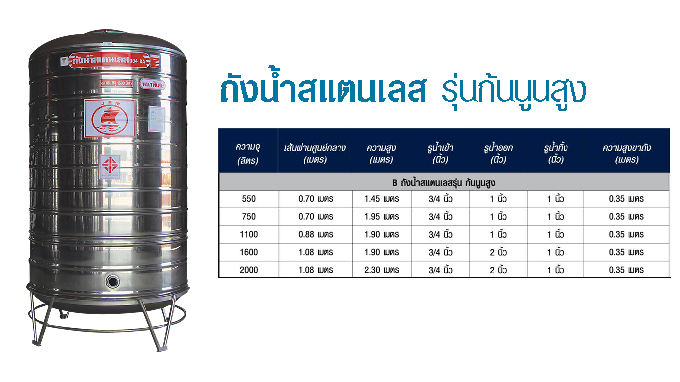 ขนาดบรรจุ : 550 ลิตร/ 750 ลิตร /1100 ลิตร / 1600 ลิตร /2000 ลิตร