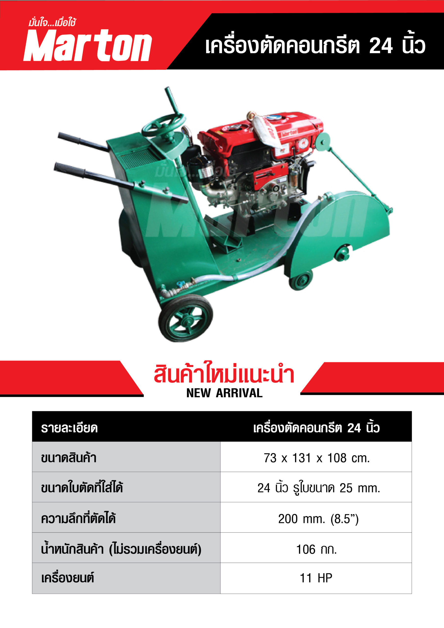 – สามารถใช้งานร่วมกับใบตัดเพชร ขนาด 24 นิ้ว และใบตัดเซาะร่อง