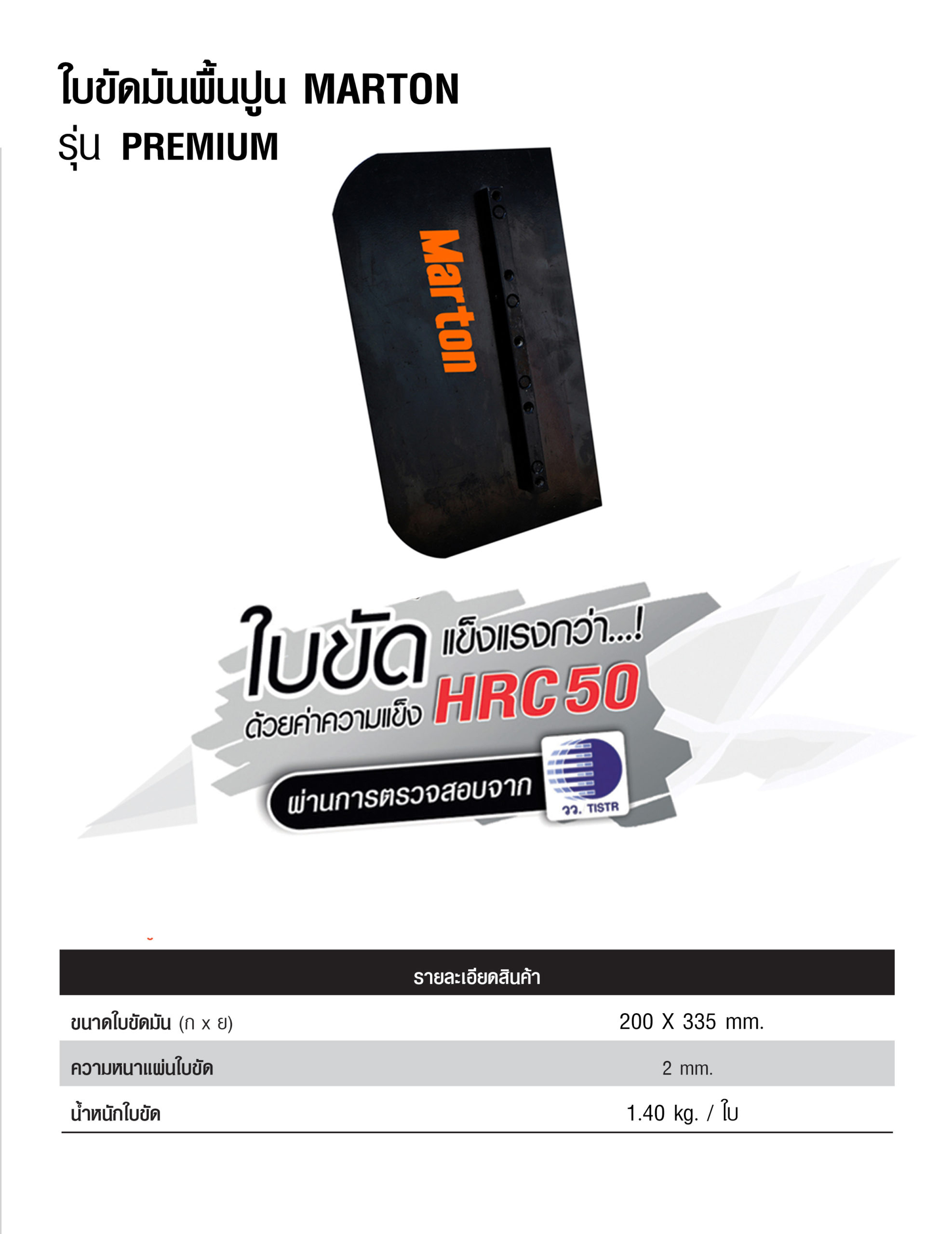 ใบขัดมันปูน MARTON สำหรับติดตั้งร่วมกับเครื่องขัดมันพื้นปูน เพื่อขัดผิวหน้าปูนหรือคอนกรีตใหม่ให้ขึ้นเงา มีความแข็งแรง ผลิตจากเหล็กคุณภาพ มีขนาดใบที่ใหญ่กว่า ประหยัดเวลาในการขัดได้ดียิ่งขึ้น