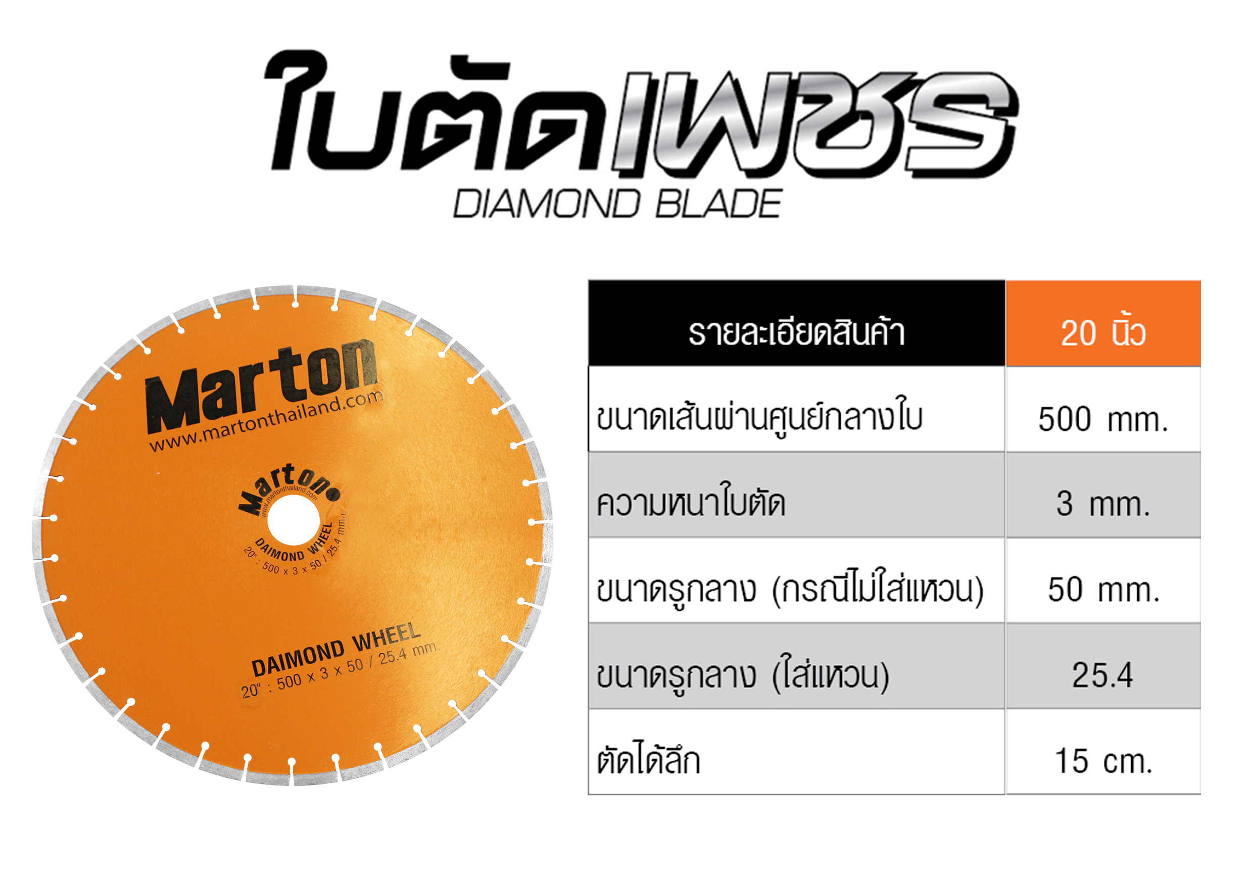 ใบตัดเพชร (เครื่องตัดคอนกรีตMARTON) รุ่น 20 นิ้ว หนา 3 มม.